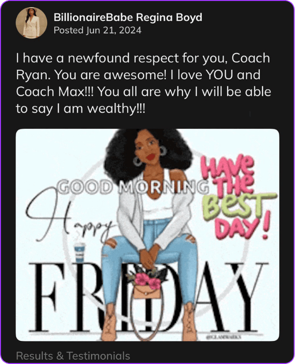 The Kingdom Vault is Coach Max’s private inner circle — a faith-based wealth network where you’ll gain access to exclusive trainings, financial literacy tools, and her personal connections in trading, real estate, and business.
